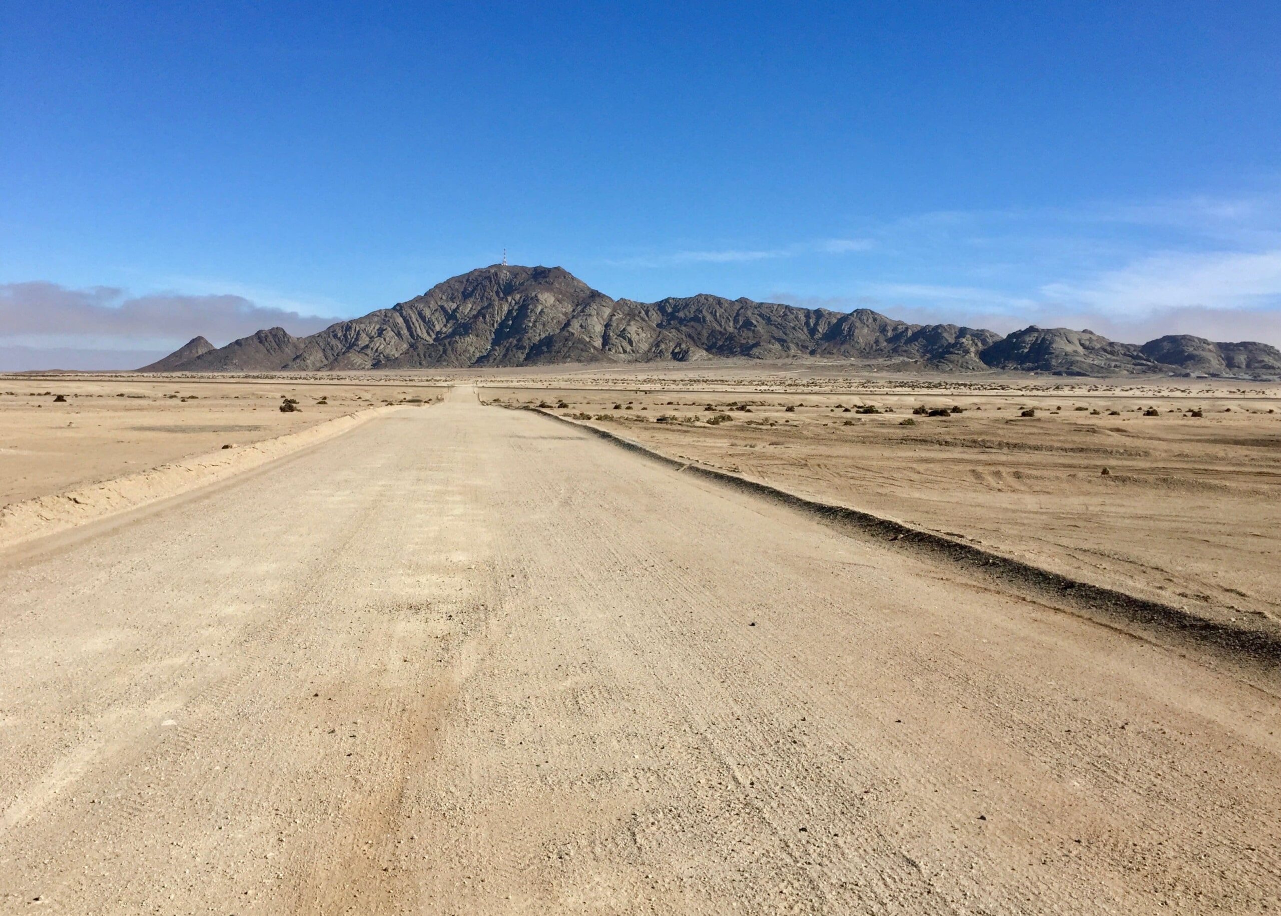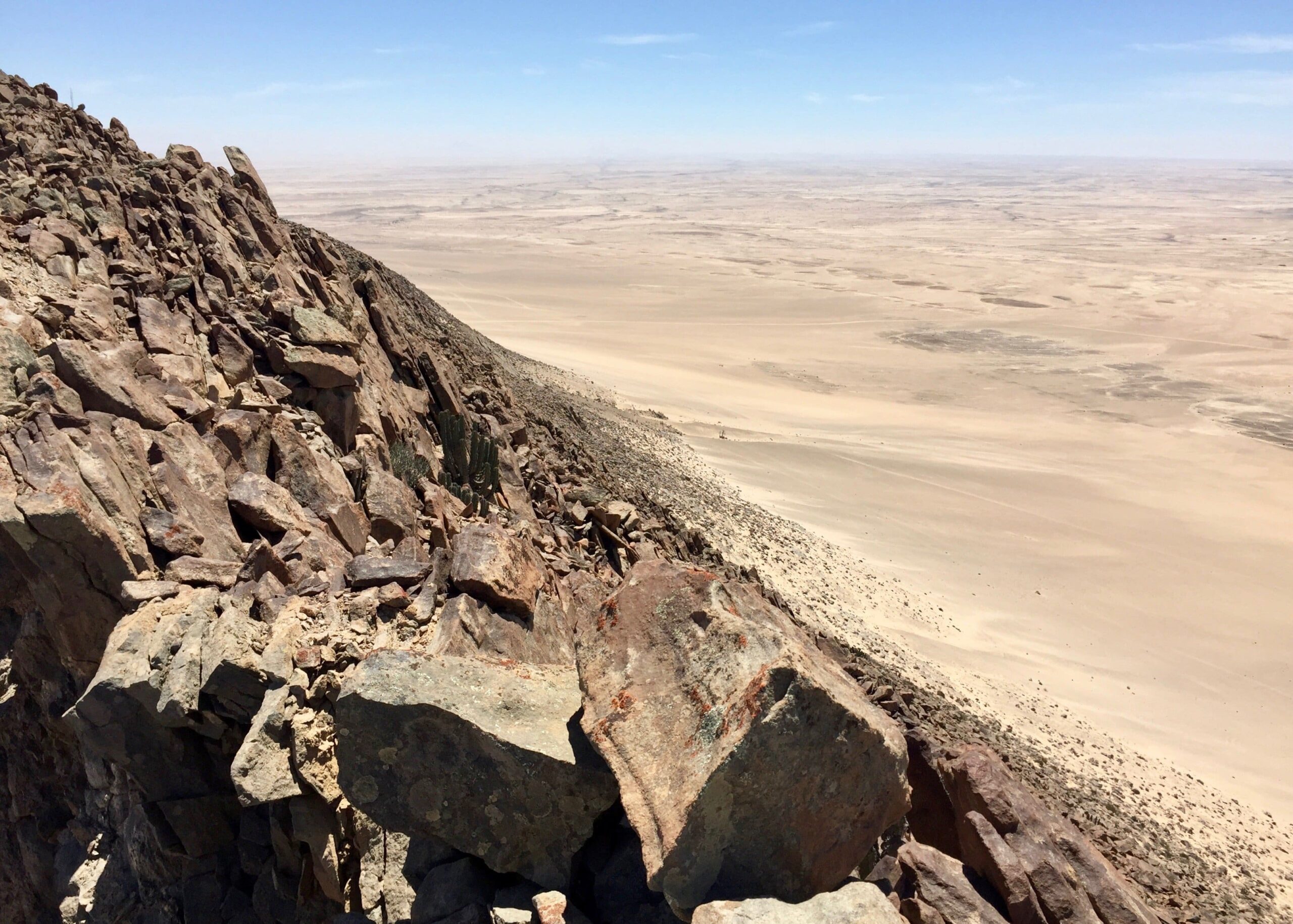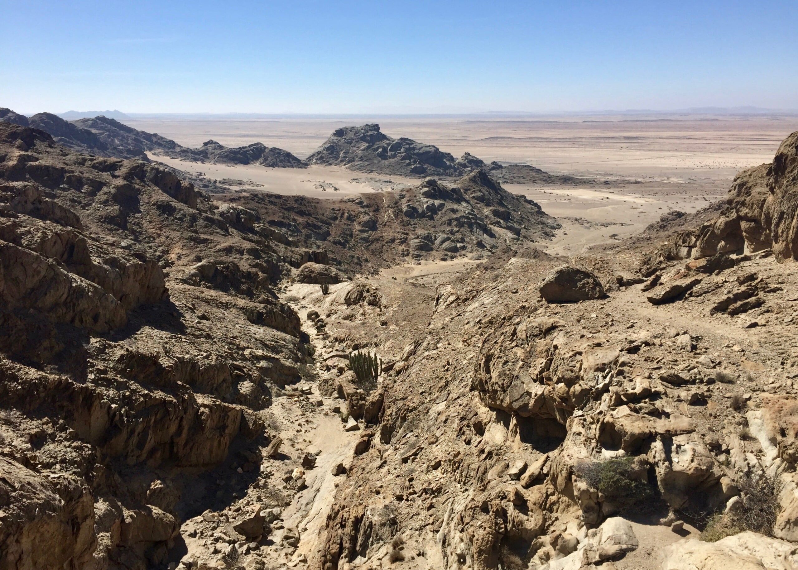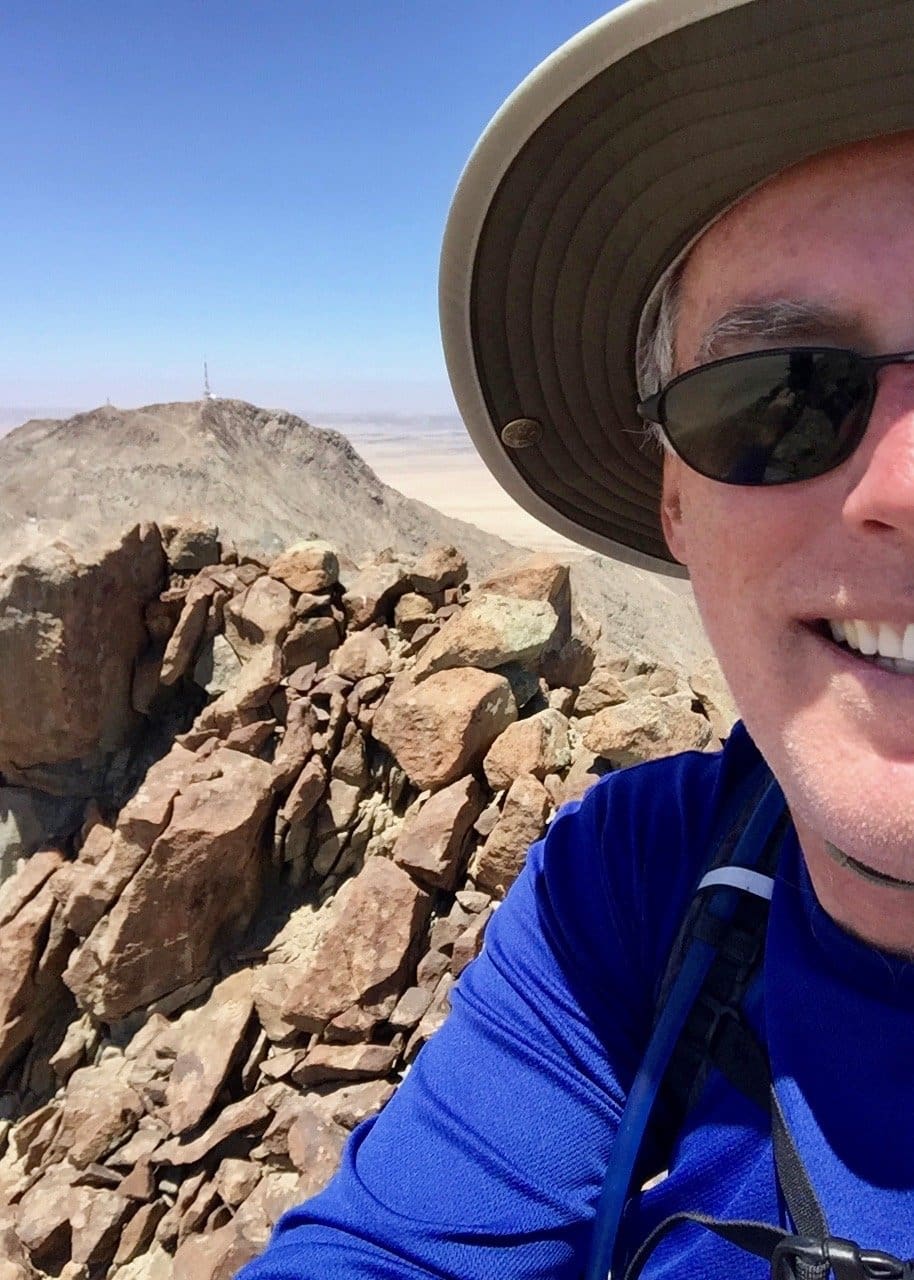 It’s been awhile, but I finally got out in the desert again recently, climbing the peaks of Rössingberge, 20km from Arandis. It’s the tallest range in the area, viewable from my front porch, and has been a target of mine since I arrived last June. Fellow PCV Eric visited from nearby Karibib and we hitchhiked to the access road off the main B2 Highway. There were trails to two of the peaks but we found ourselves scrambling up scree slopes and along ridges of loose rocks to the others.