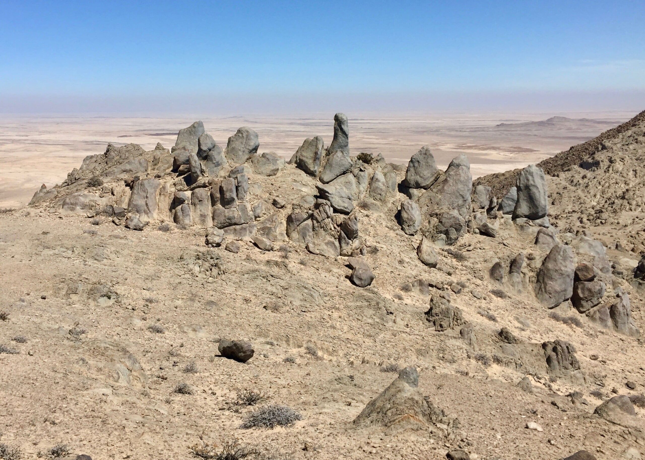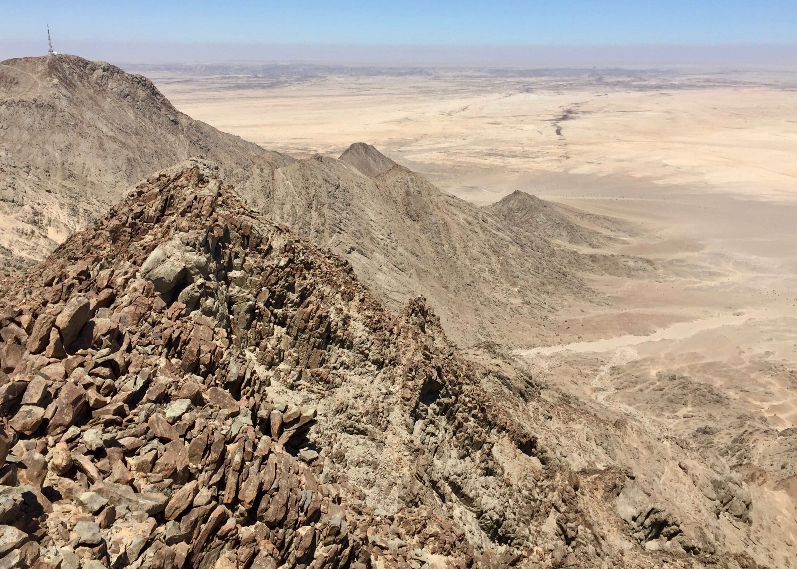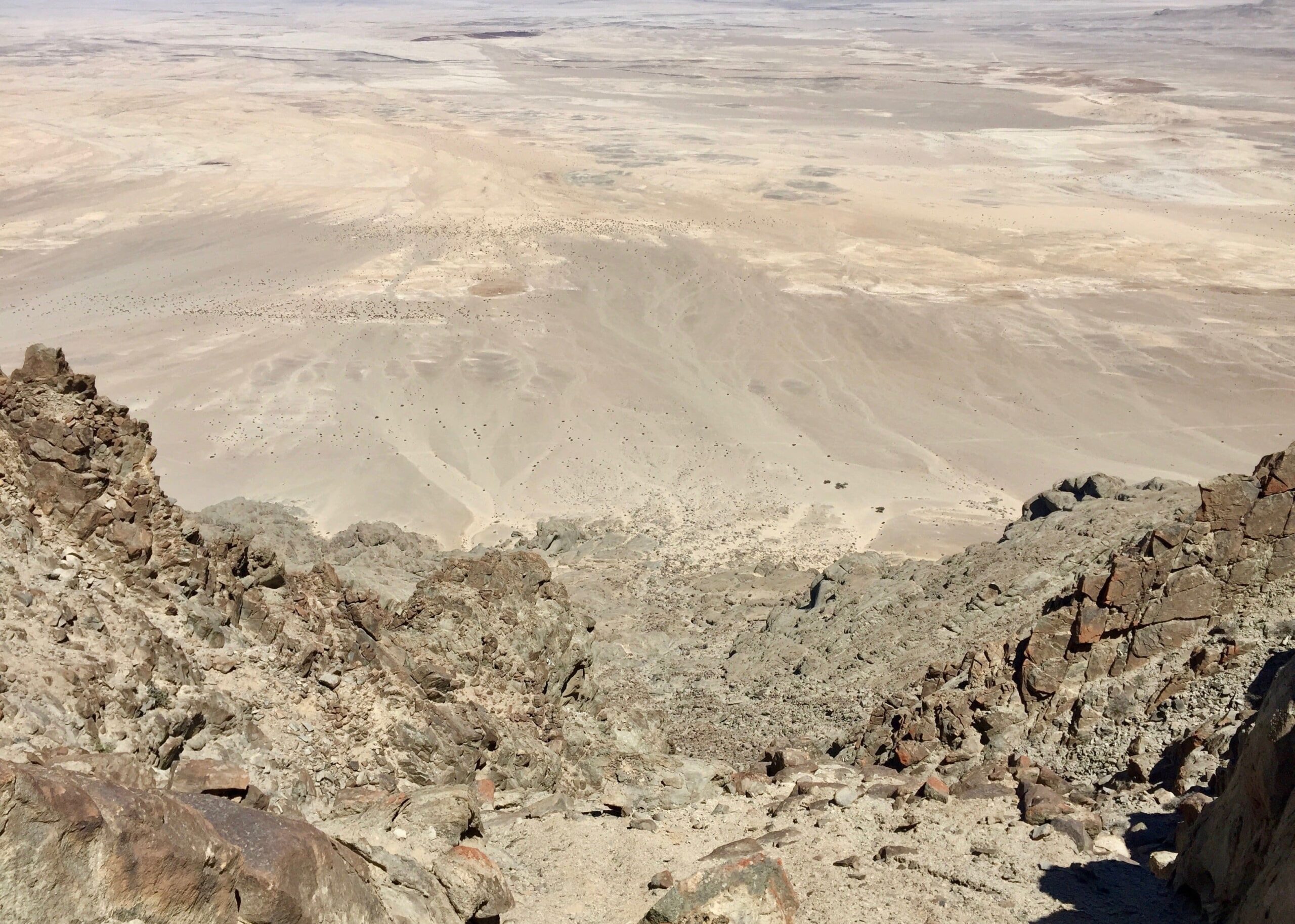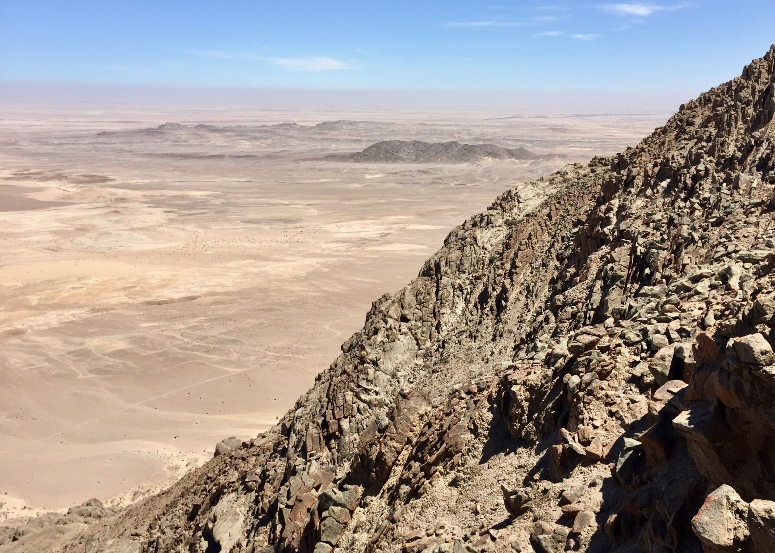 The Western slopes, in contrast, are much taller. The fog bank in the distance is at the coast near Swakopmund.
