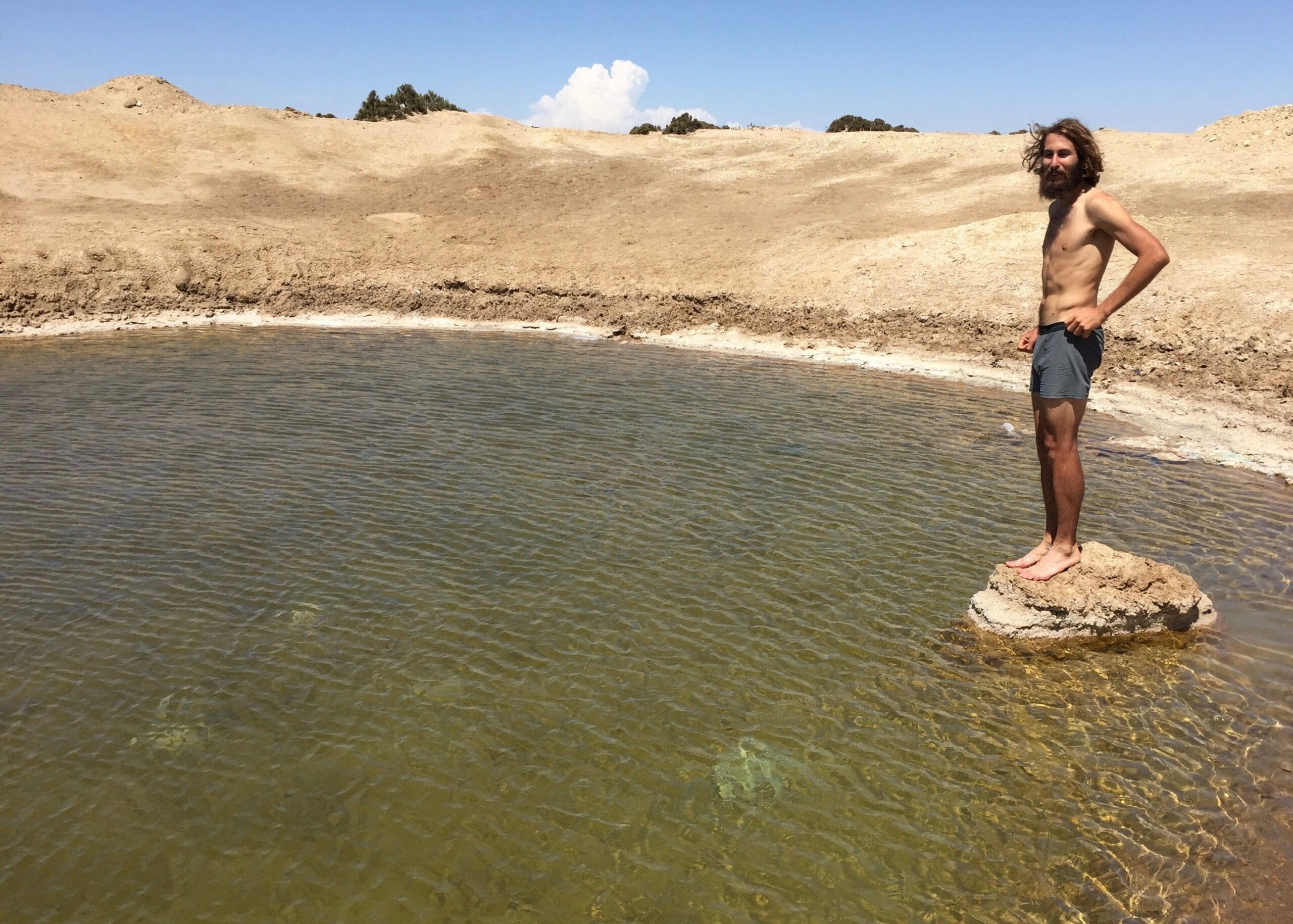 Back on level ground, a natural salt pond provided a refreshing reward on the return hike.