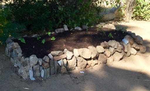In the second phase of our perma-gardening project today, we built this raised bed from scavenged stones and bricks to plant tomatoes, bell peppers, beans, squash, cabbage and lettuce. This was a new experience for many of my young colleagues. With luck and hard work, we’ll be sharing this knowledge with our new communities.