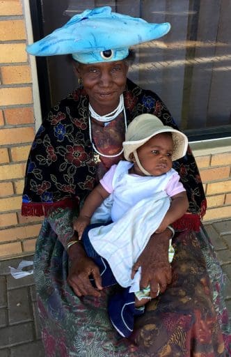 And in town, a Herero woman holds her granddaughter. Peace Corps lets us meet fascinating people at every turn…
