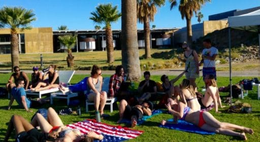 PC Trainees relax around one of the pools at Gross Barmen, sharing a hookah.