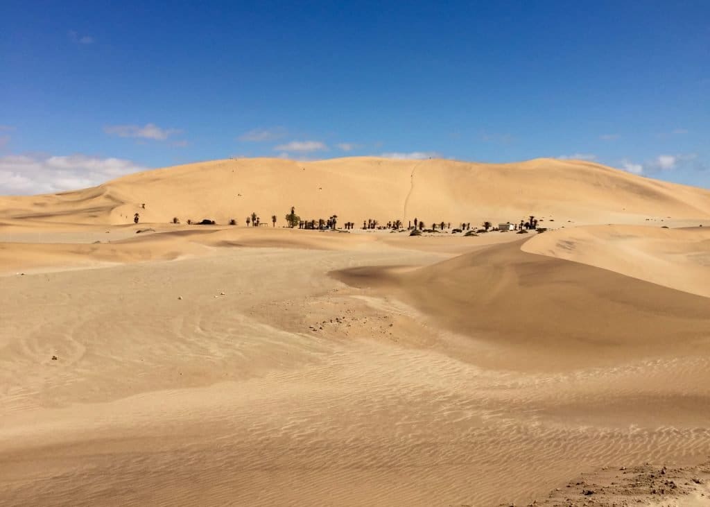 With fellow PCVs Andrew and Kevin, I climbed to the top of one of the largest sand dunes in the world on Saturday. So named because it is the seventh dune after crossing the river Tsauchab, Dune 7 has been measured at over 1,256 feet – 383 meters. I hope these photos and video clips give you some idea of its scale and beauty, as well as the fact that it’s made up entirely of small grains…