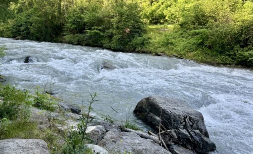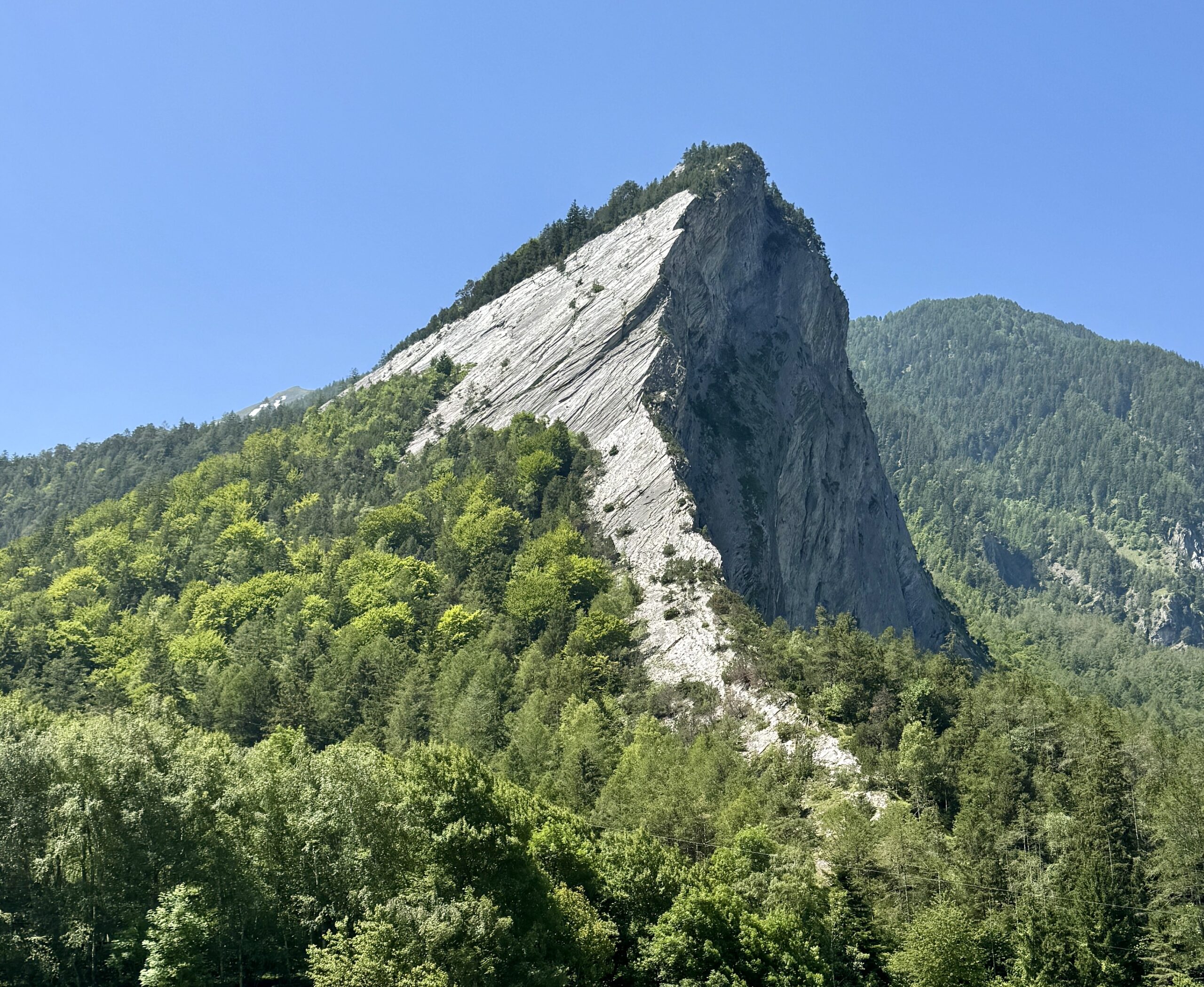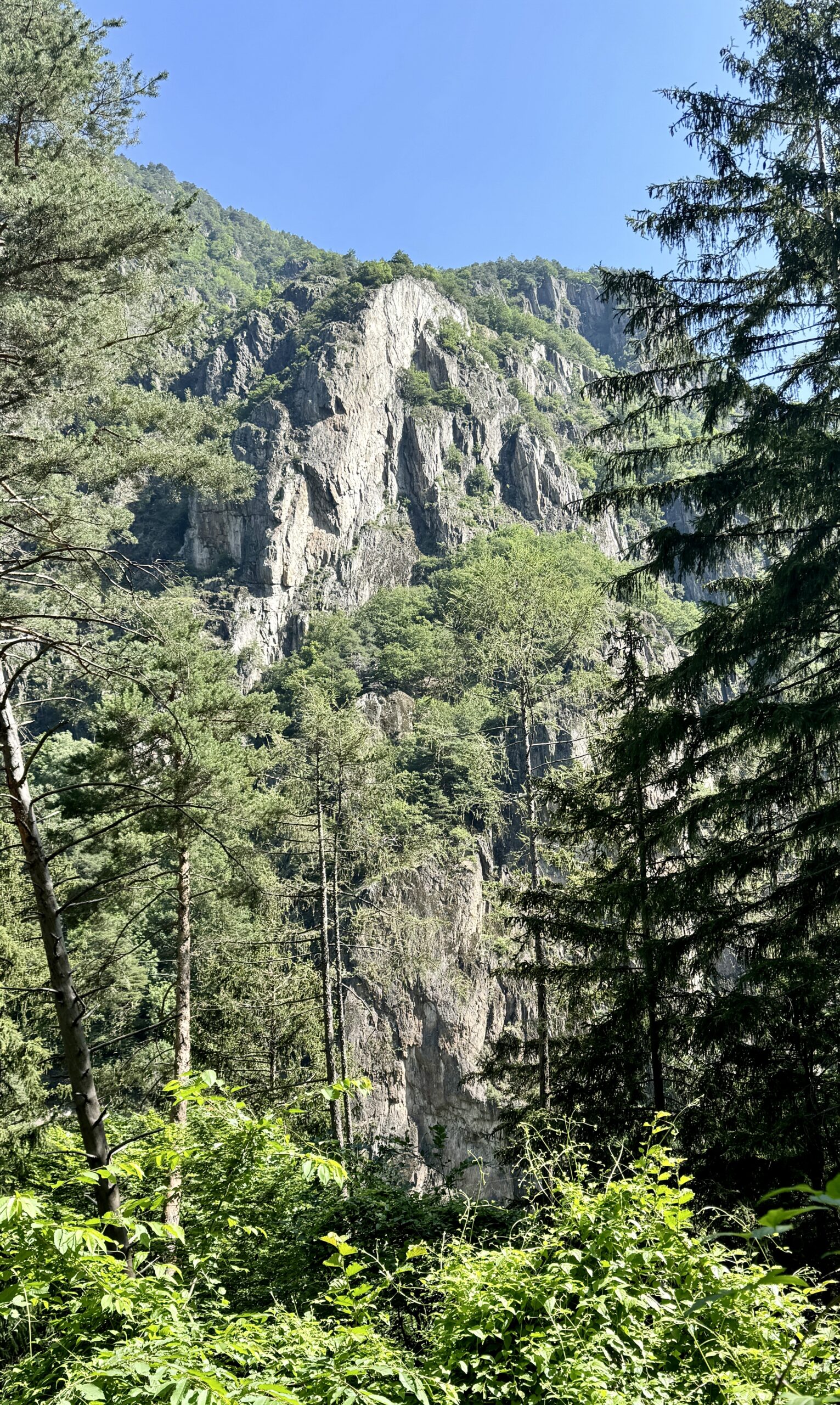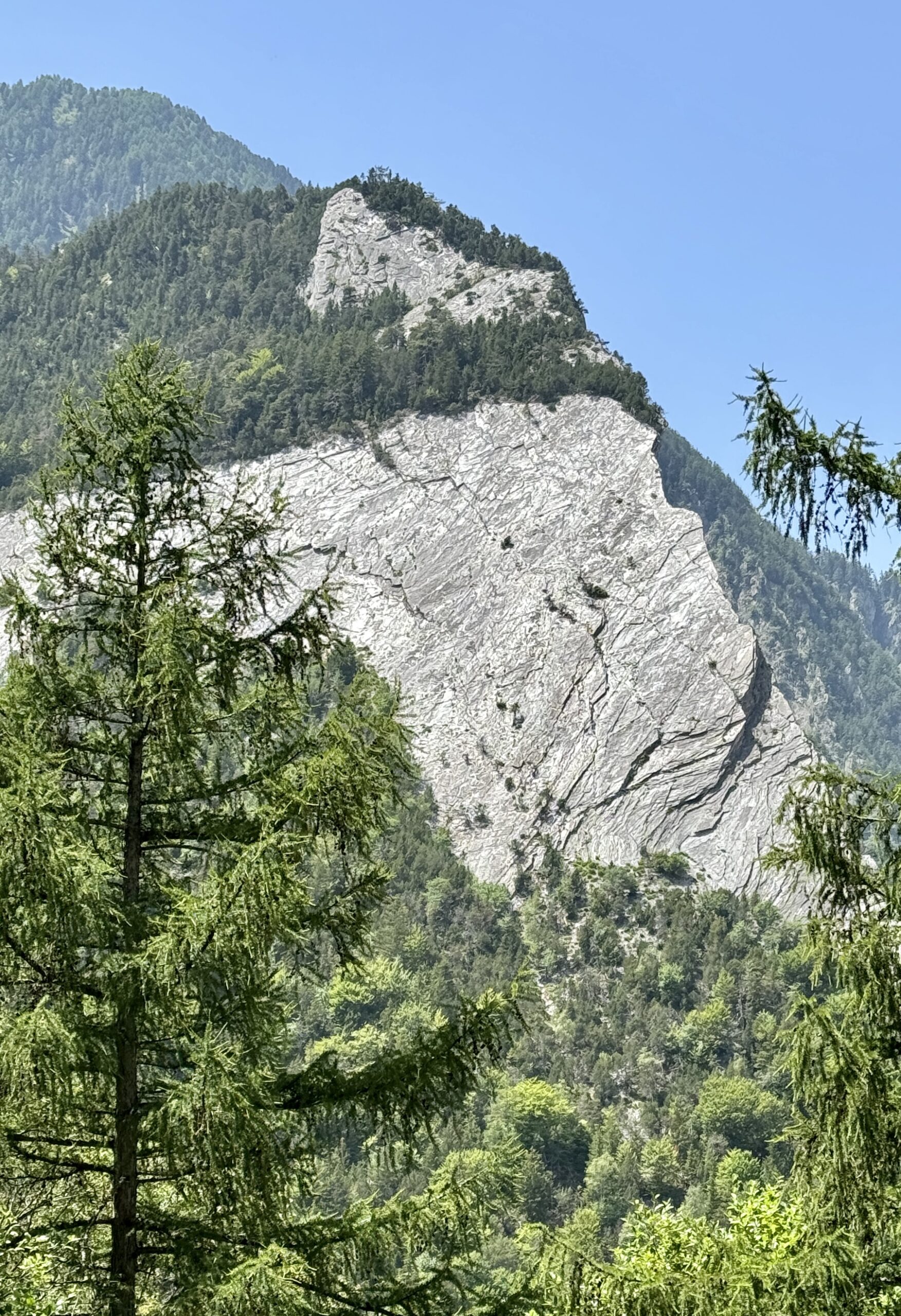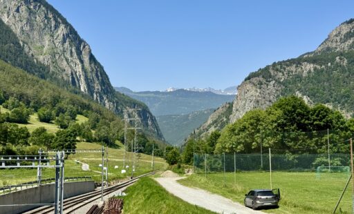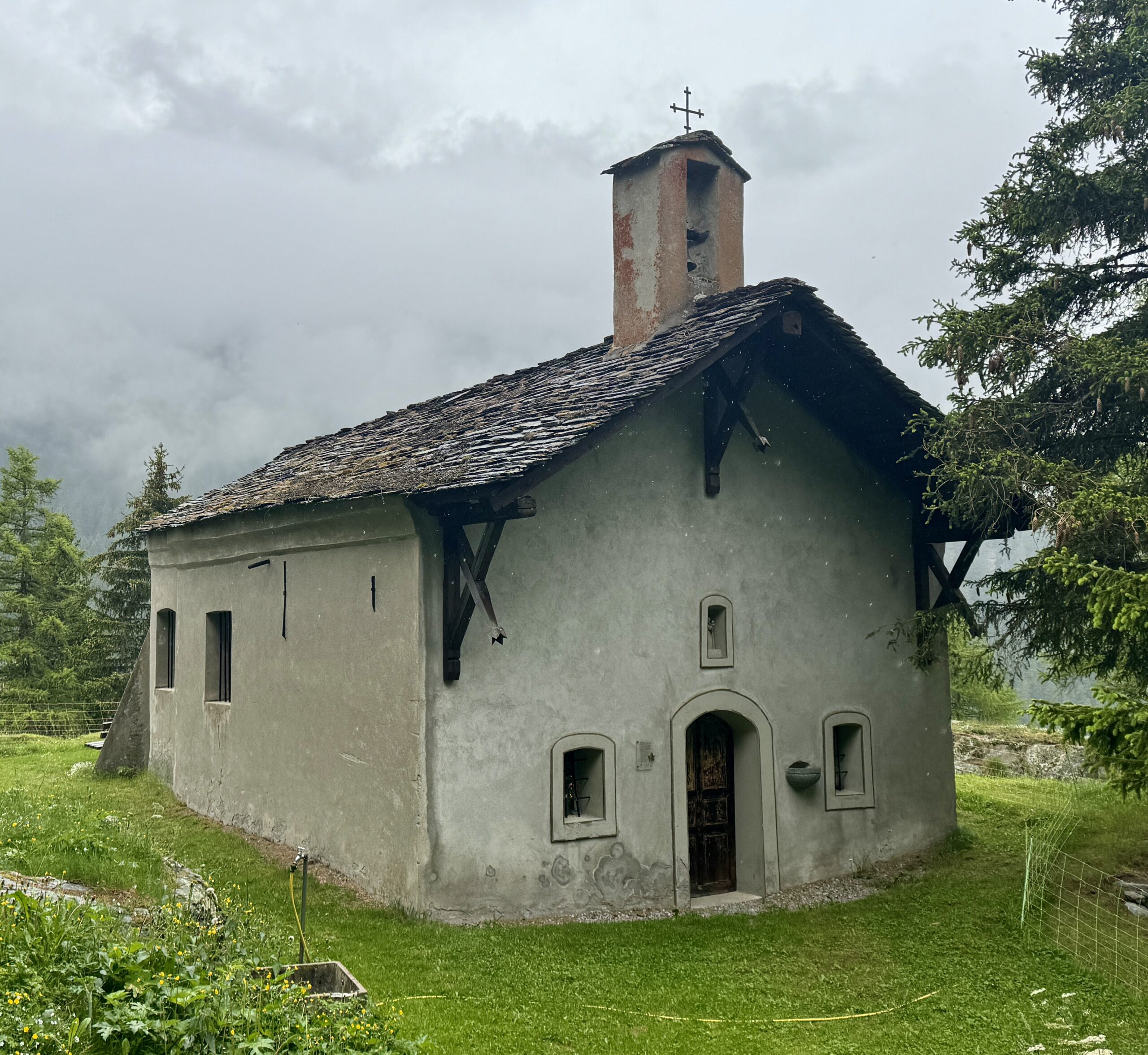 A full day of climbing. Up two canyons surrounded by high granite peaks. The first was a narrow gorge that Sandy Brown’s guidebook called the most difficult stretch of the entire Via Francigena (I wouldn’t refute that – at one point, the trail had been wiped out by a recent landslide down to the river, but an alternate has been developed). The second canyon was much wider: glacier-formed. It’s good that I like to climb, because I have more of it to come in the next two stages.