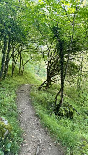 I napped. I read. I visited with a family of 3 from Maine who are spending 3 weeks walking part of the VF for their first experience away from an English-speaking country. Not a normal Via afternoon, but I enjoyed chilling out. Now, as I type these words, I’m hypnotized by the wispy clouds that have switched directions and are floating up through the canyon I walked today. One minute I can see the peaks high above me, and the next I can’t see 20 meters across the street.