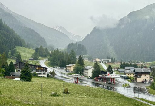 My only concern tonight is the lightning storm that arrived this afternoon (per the forecast) and is expected to stick around for the next two days, when I want to reach the high pass to cross into Italy. Stay tuned!