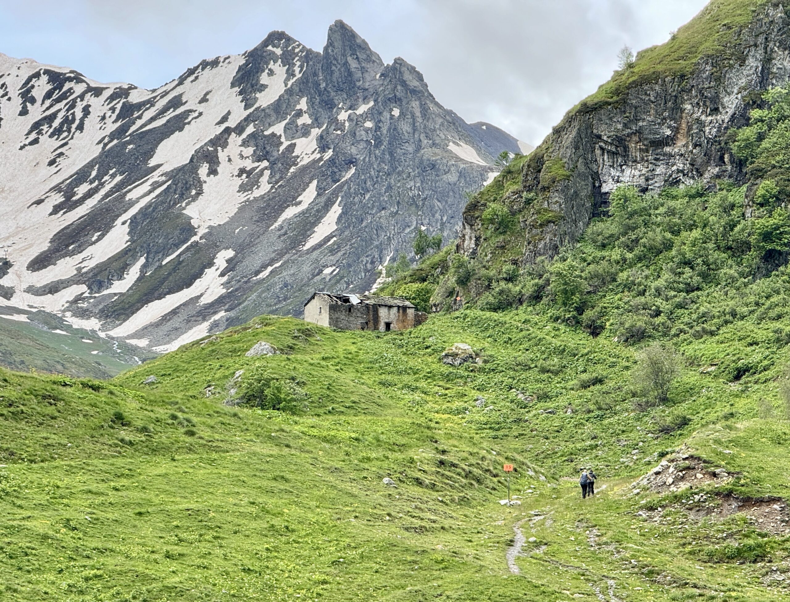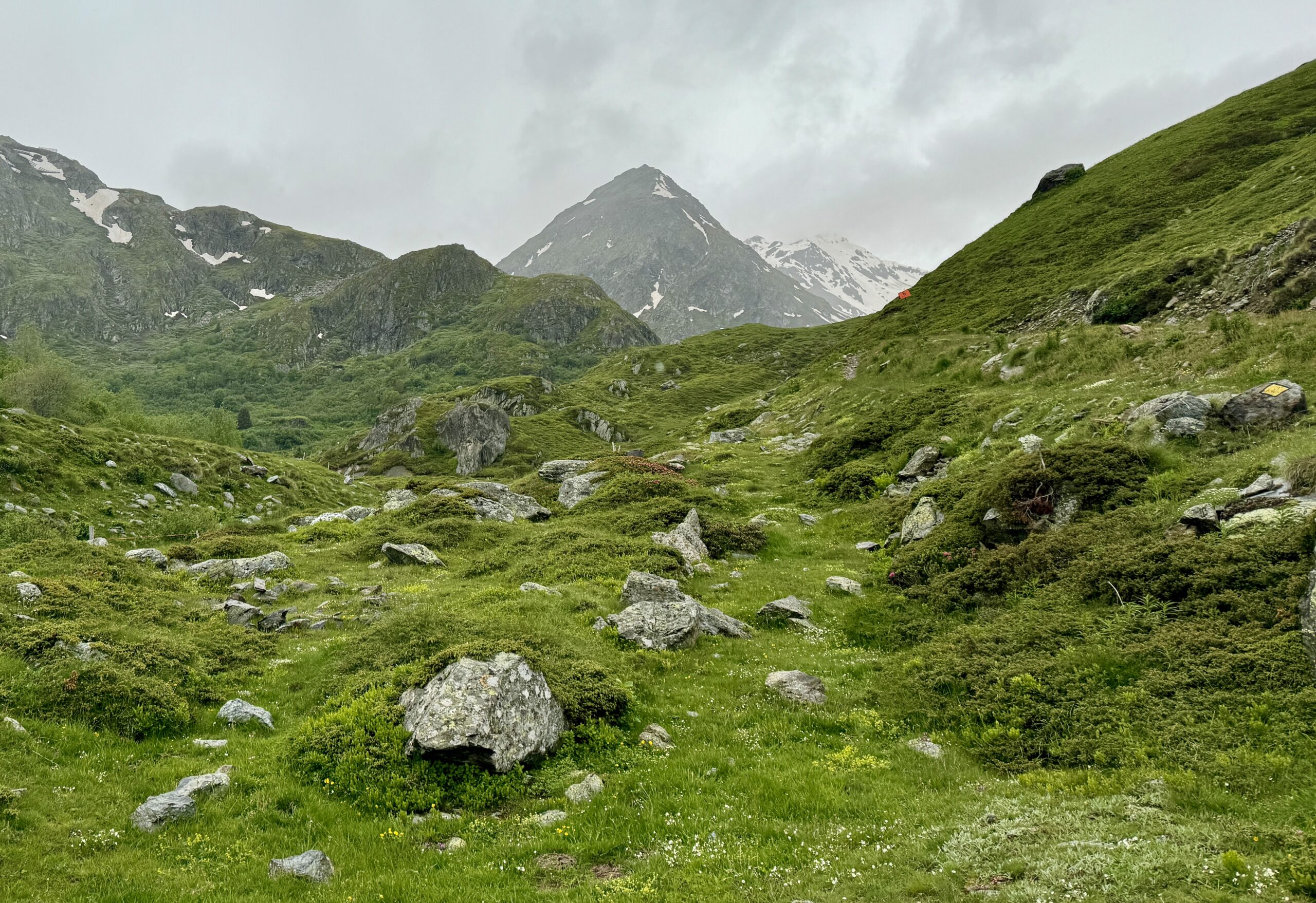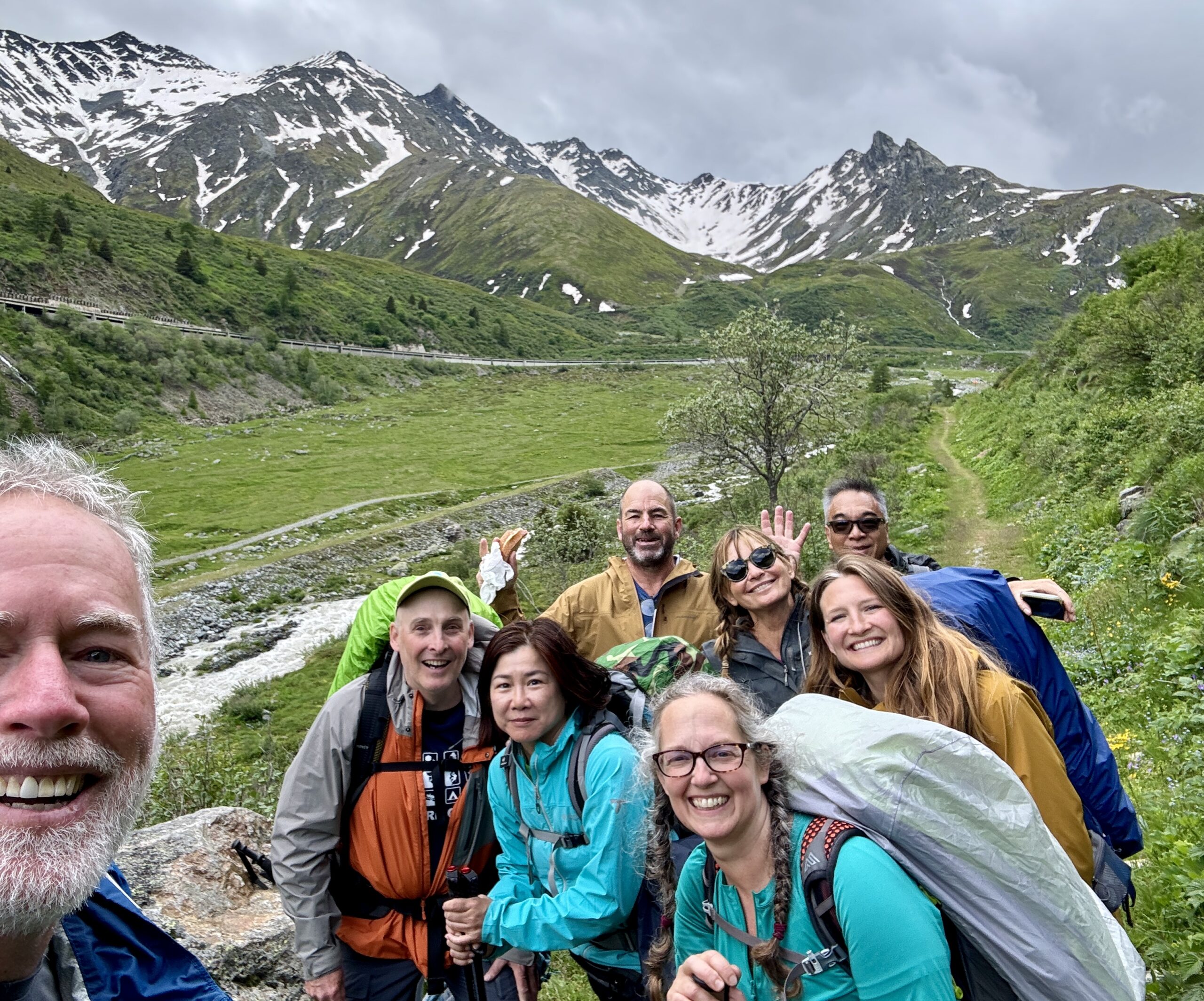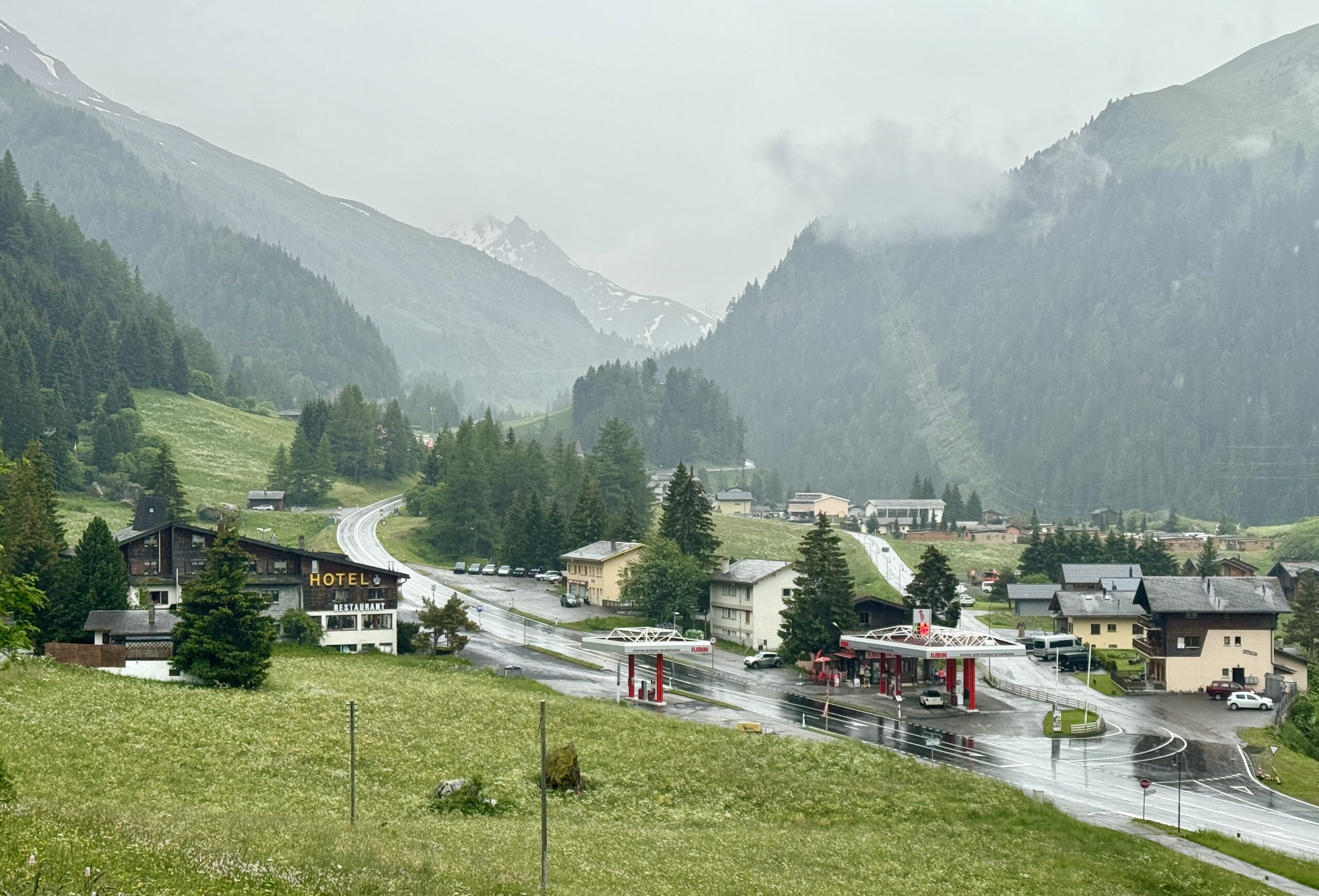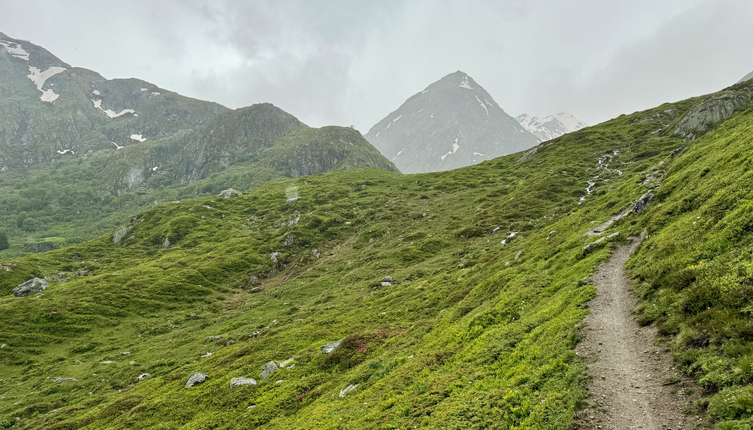 I will admit to some trepidation over the past month, as the “late Winter, late Spring” of 2024 brought angst to walkers who were relying on the “traditional” schedules for this trek. When the Col didn’t open on June 1st, as “it always does…” even those of us still weeks away began to consider the alternate plans for this stage: “If the trail’s closed, we can still walk the road. If the road’s closed, we can still take the bus. But if the road’s closed to vehicle traffic, oh shoot… what then?” I have been checking the weather forecast for the Col every day of my app’s 15-day window. It wasn’t looking good, “but forecasts for the mountains are never reliable…” Even as recently as last night, when the group of walkers in our “base camp” collectively compared our various weather apps, we decided an early start would be unwise and agreed on a 3-4 hour window starting at 9:00am that we should aim for.