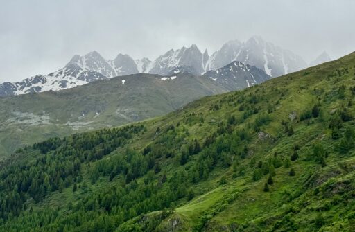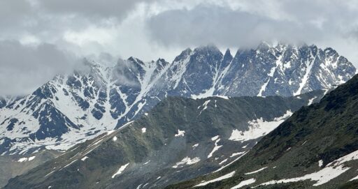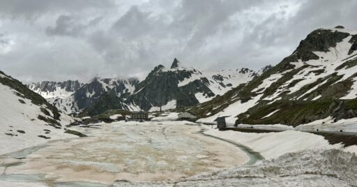 This historic pass over the Alps sits at the border of Switzerland and Italy in a jagged saddle between Mont Blanc to the west and the Grand Combin to the east. Water that falls on the north side of the pass drains into the Rhône Valley through Switzerland and France, while water falling on the south side of the pass drains into the Dora Baltea and Po Rivers in Italy.