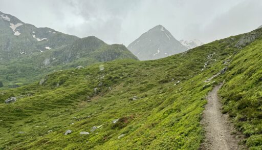 There’s no doubt about it now: I’m in the high mountains! The views are a dead giveaway, as well as my slower-than-normal pace and my need to catch my breath more often on the trails. The weather reduces the quality of the images, but I think you’ll still get a good idea of what it’s like out here.